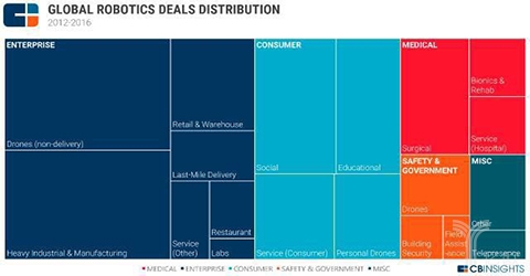 各地机械人财产成长敏捷,面向医疗的占比13%。