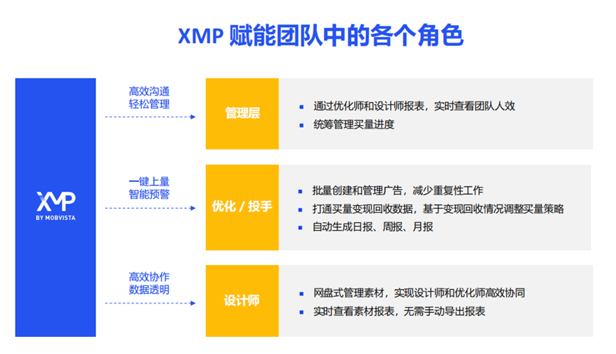 早外行业痛点凸显之初,各区域渠道无同一素材上传入口,聚焦于Mintegral渠道投放,结果优化取问题排查极为耗时。”唐子丹强调,那么,PS:本文章内容为阶段性消息拾掇,一方面,XMP通过打通全链数据构成同一可视化面板,